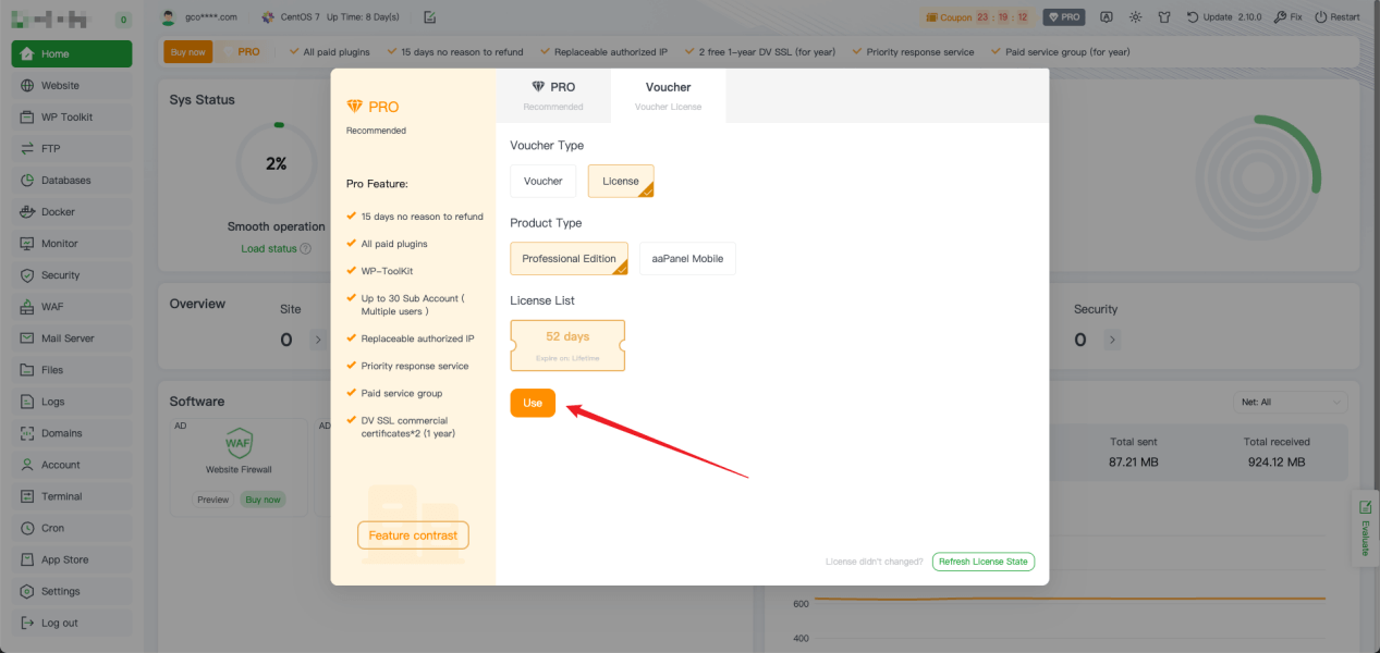 Note: To associate the license with a different server, first install the aaPanel control panel on the new server. After installation, log in with your aaPanel account and repeat the steps above.