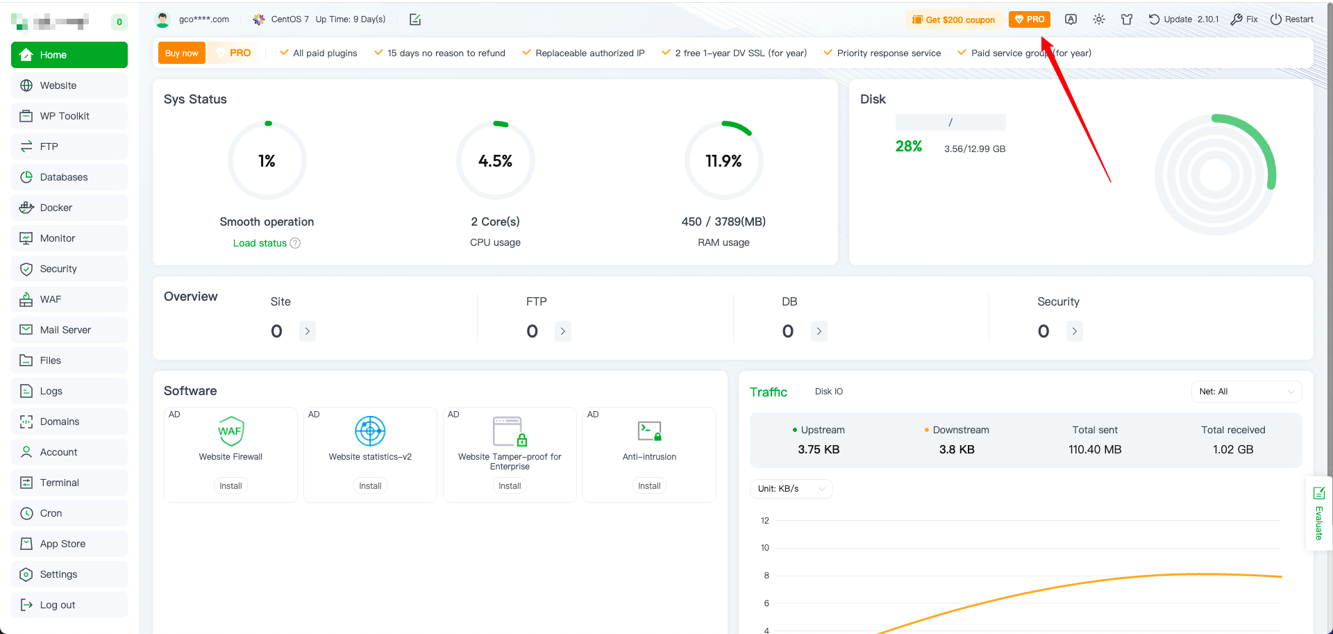 1、Log in to the original server and click ‘PRO’.