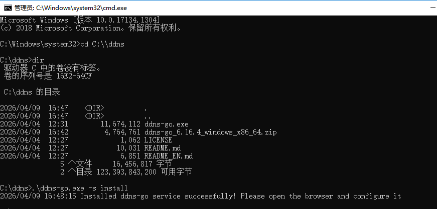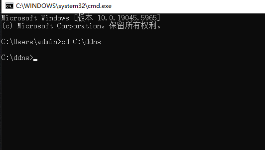Press Windows key + R or search and run directly. Type “cmd” to enter the command line and switch to the C:\ddns directory.