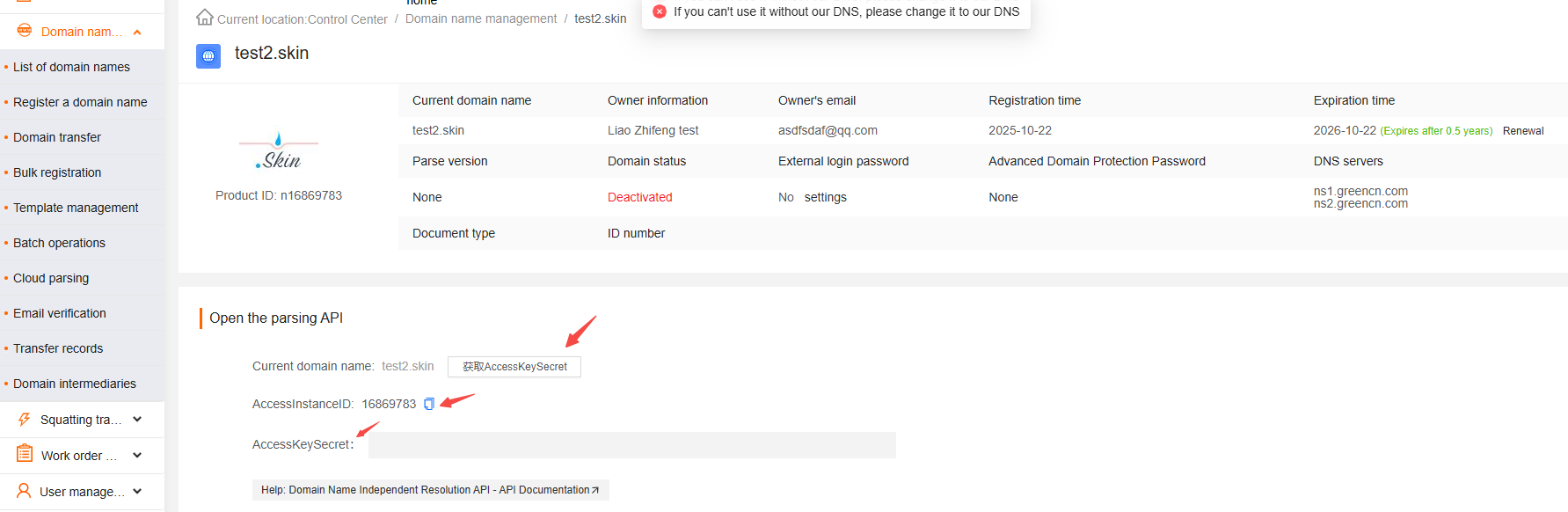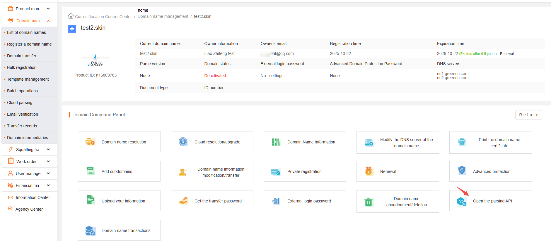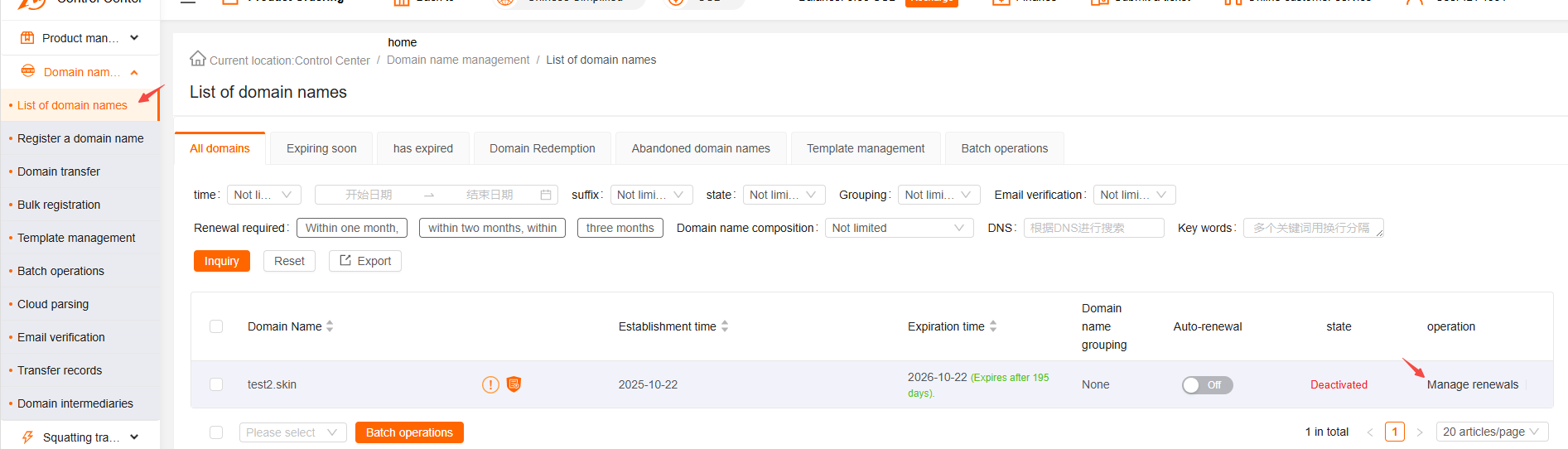 2. Click to register an ERANET domain name Click to register an ERANET domain or use an existing domain and contact customer service to activate the domain management interface.