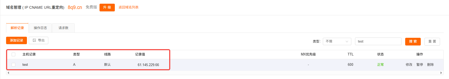 Click Save to check if the subdomain’s DNS resolution has been added in the logs and ERANET management backend.