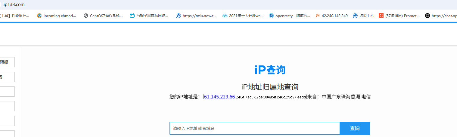 1. Check the type of the public IP address obtained locally. You can directly search for “ip” on Baidu or visit ip138.com.