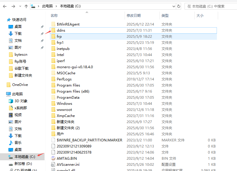 - Note: You can also place it in other directories. The file is in C:\ddns directory as an example.