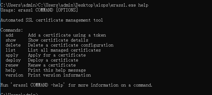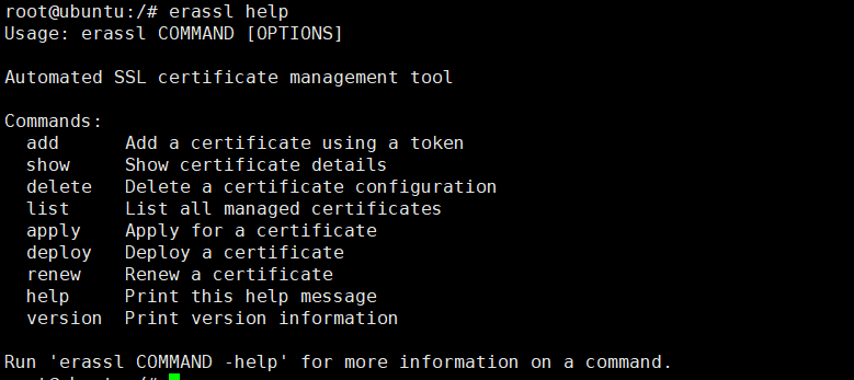 Wait a few minutes for the certificate to be automatically issued. A message will appear indicating successful certificate application. If you need to change the domain name resolution service provider for this certificate later, you can use erassl apply 1 -reset to reset it.