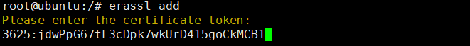 Use the erassl add command to add a certificate token. The token is the one copied from Control Center -> Product Management -> Certificate Management in the previous step.