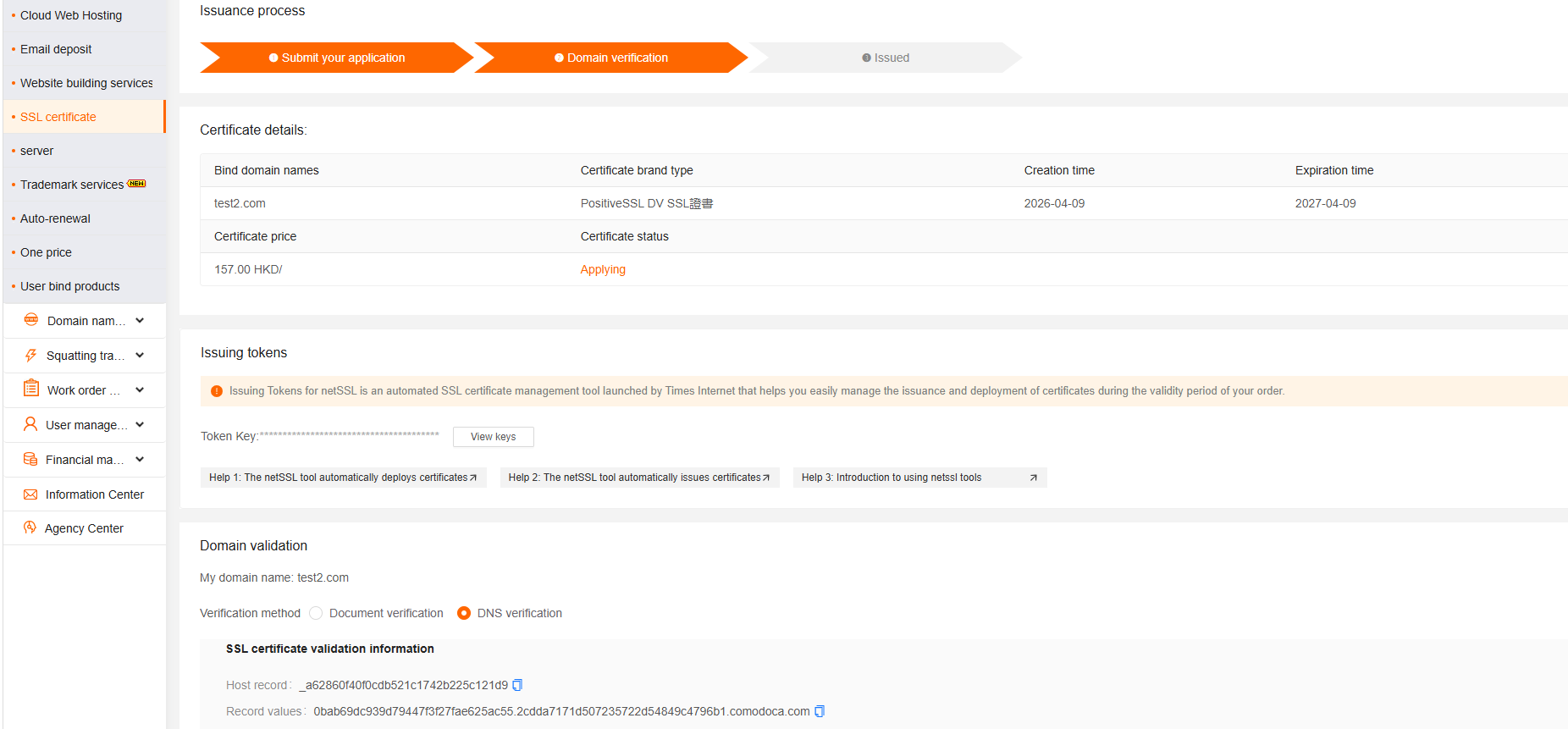 Alibaba Cloud DNS Domain Name Certificate Issuance