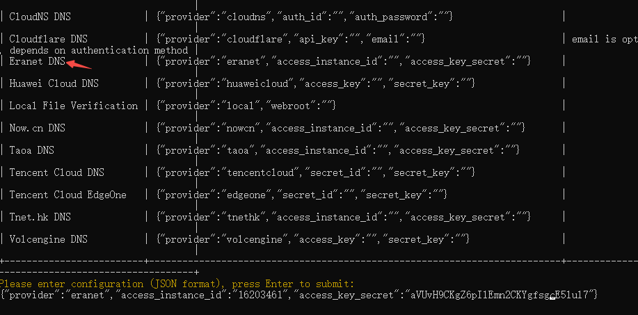 VI. Configuring Automatic Certificate Issuance Currently supported: AWS Route 53, CloudNS DNS, Cloudflare DNS, Huawei Cloud DNS, ERANET DNS, File Verification, Volcano Engine DNS, Baidu Cloud DNS, Tencent Cloud DNS, Alibaba Cloud, etc.